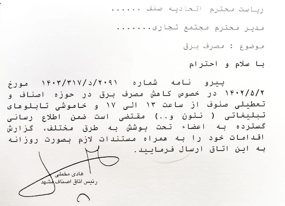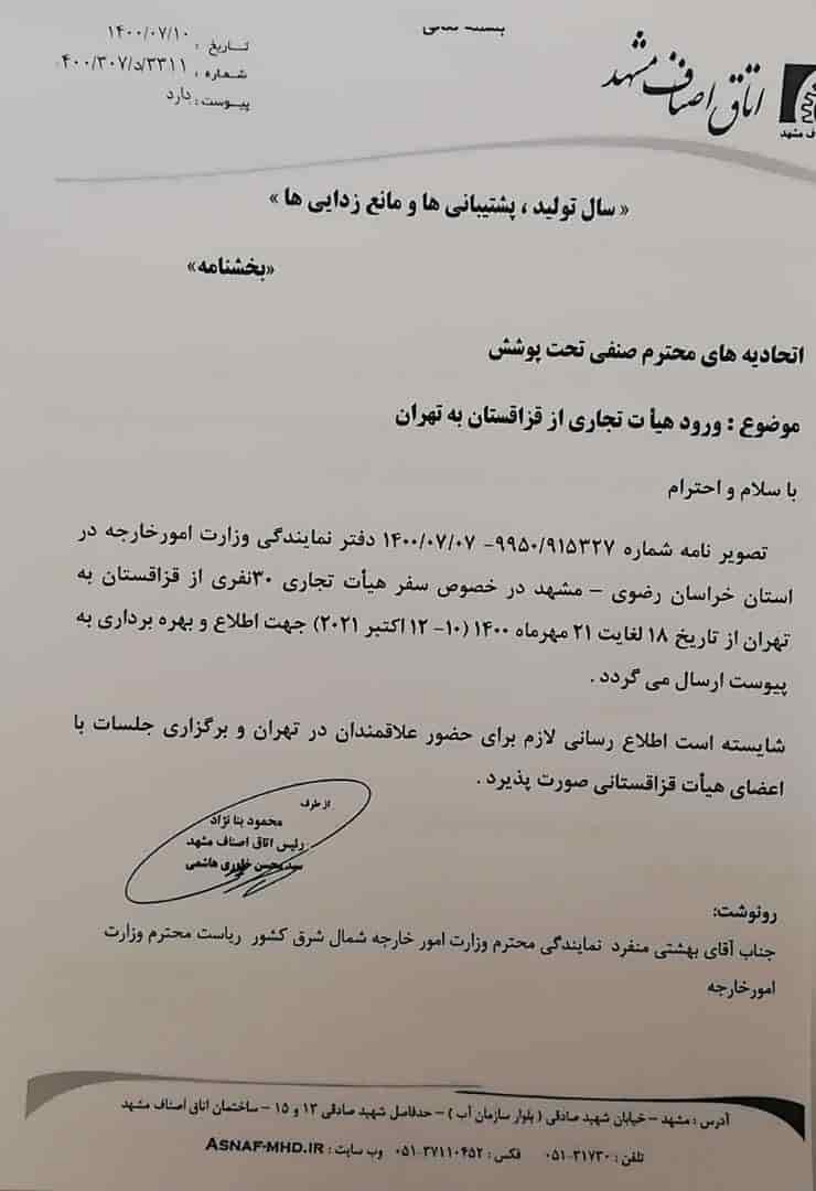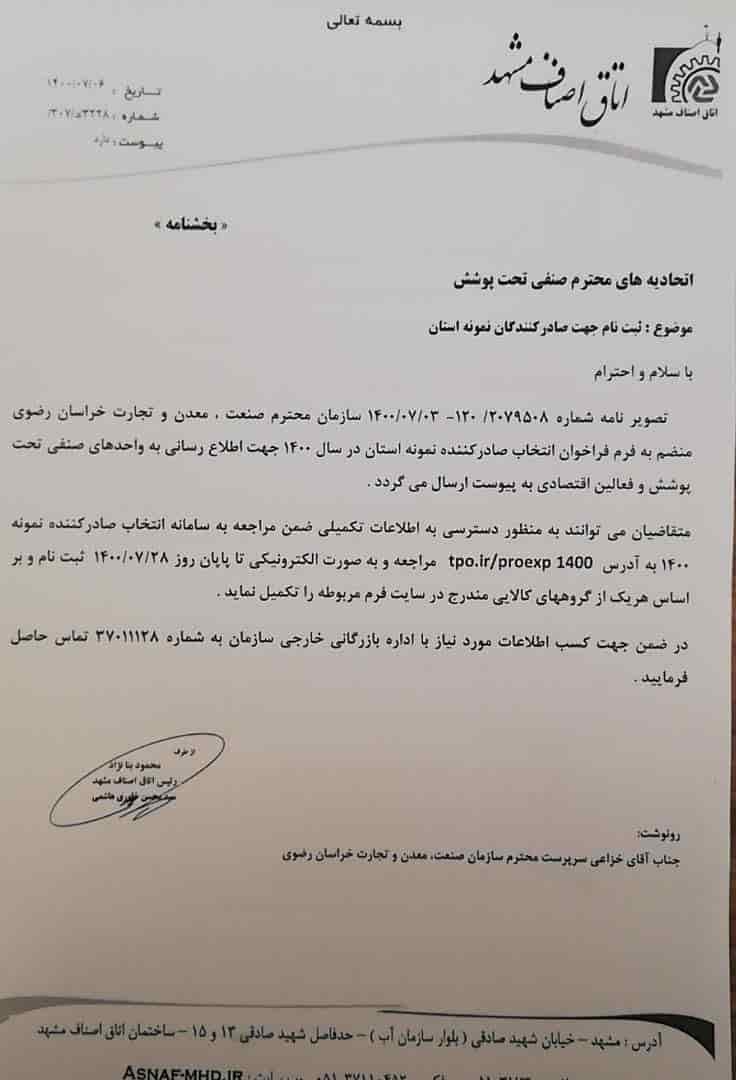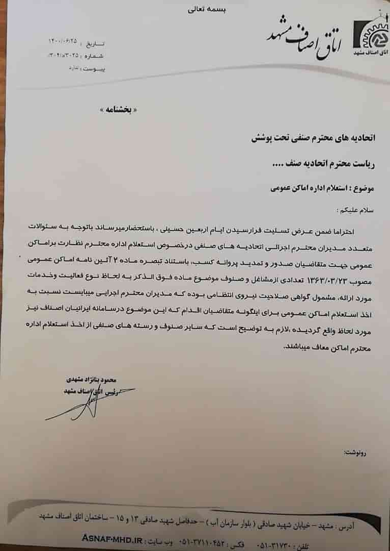 بخشنامه های اتاق اصناف مشهد